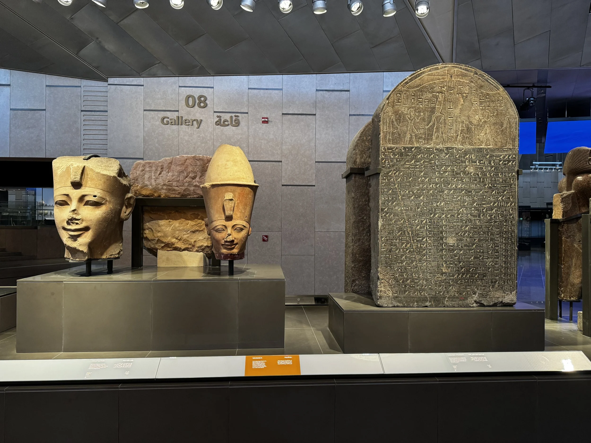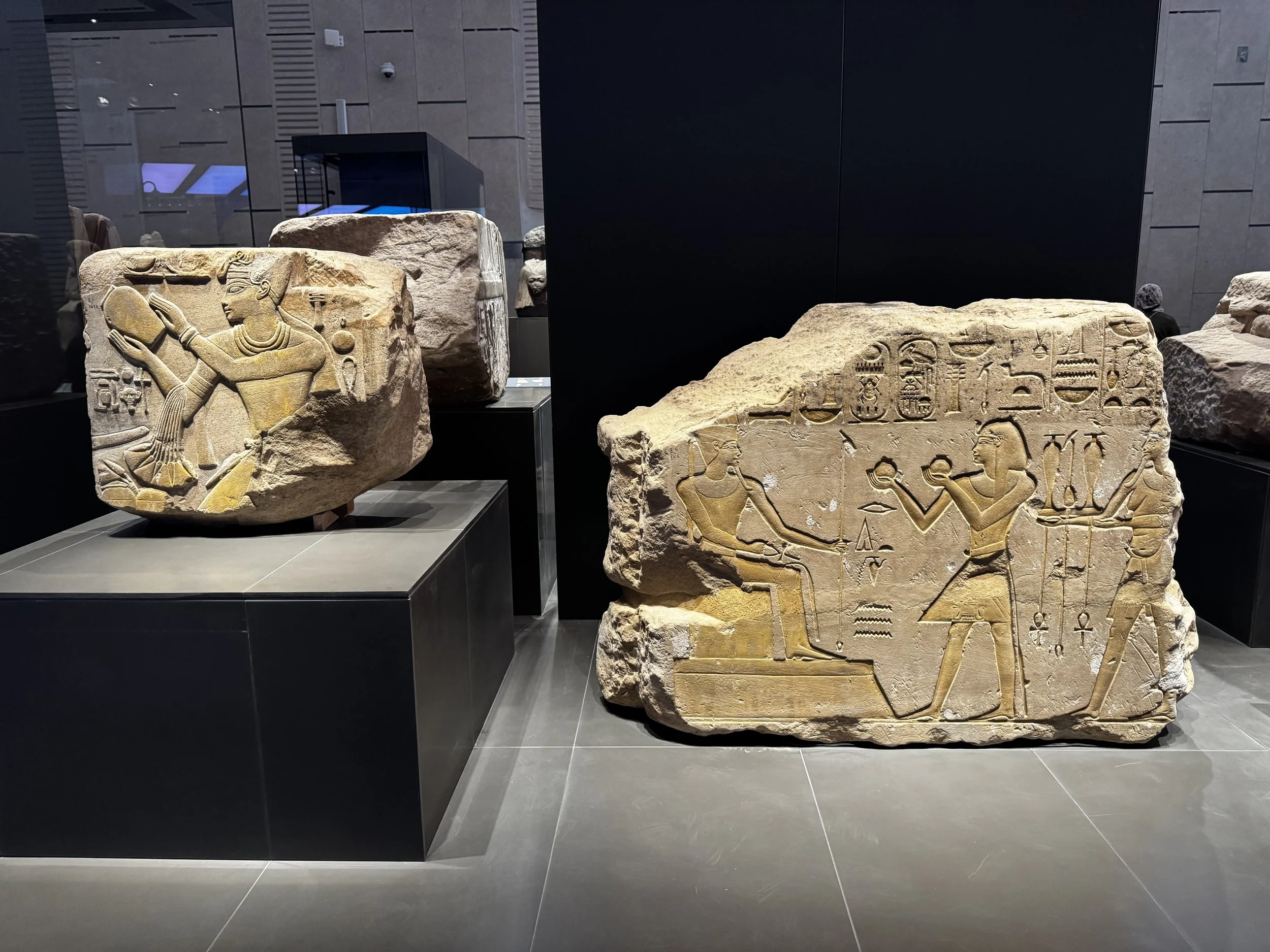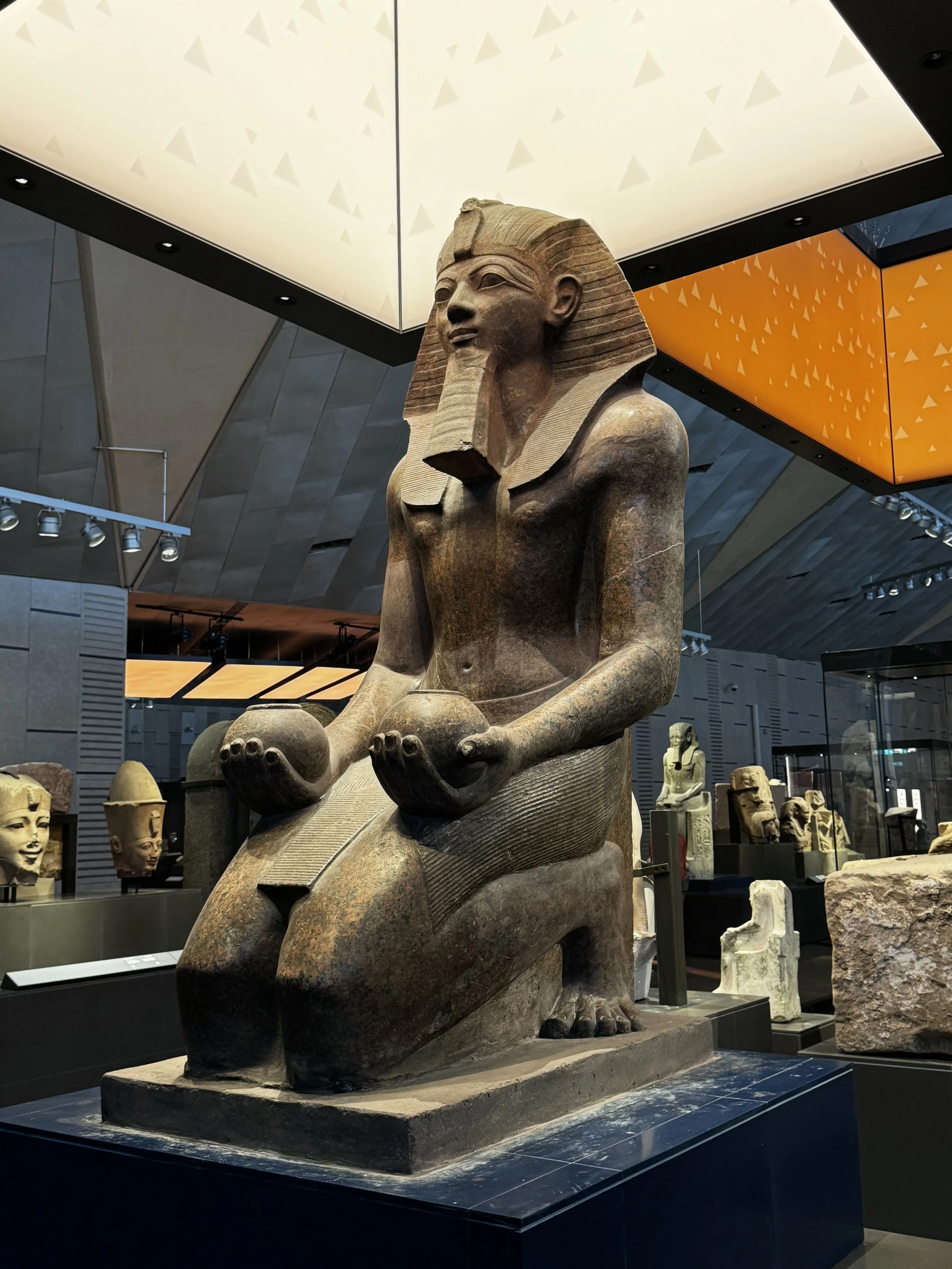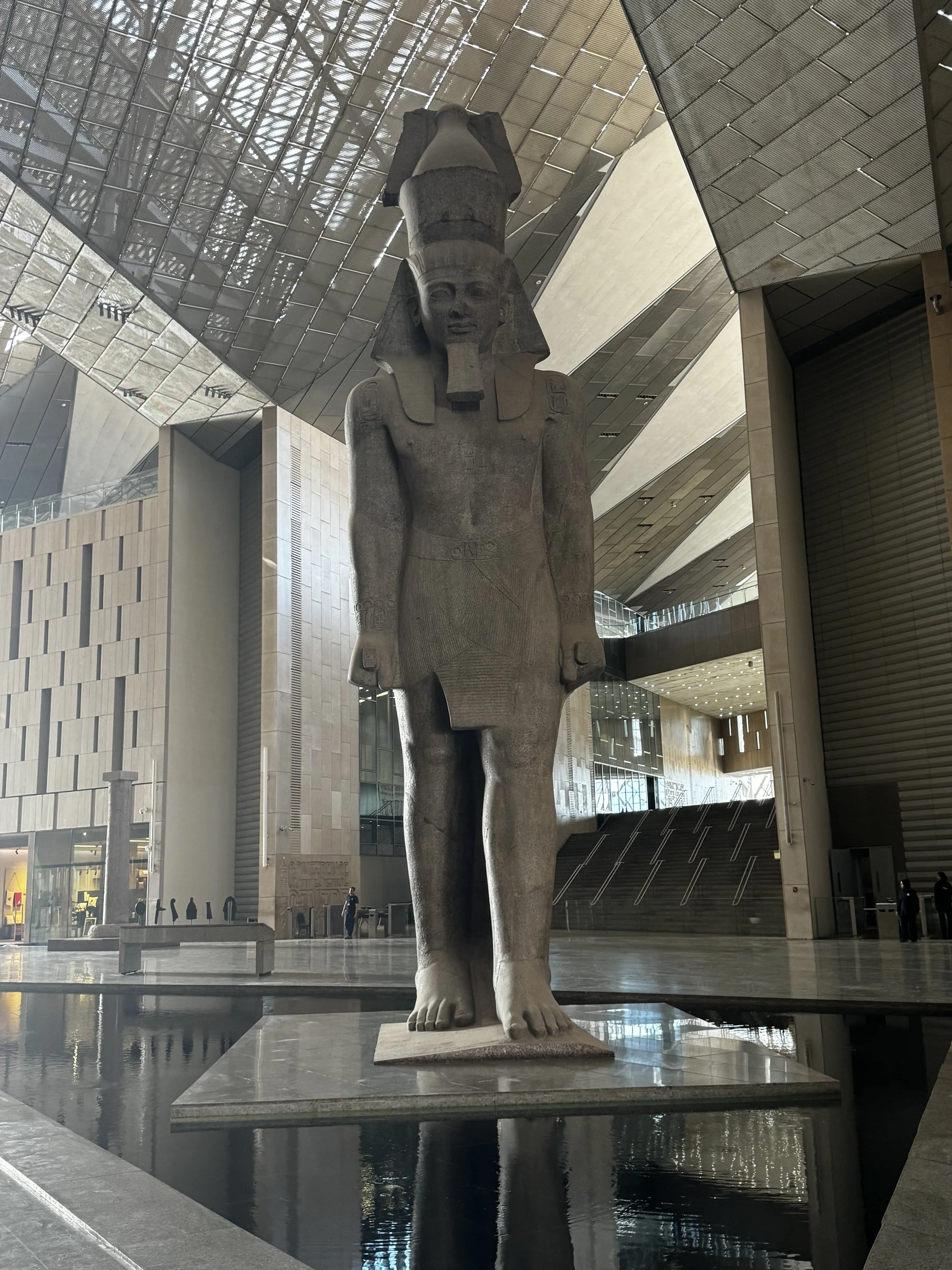 We returned to the hotel and rested before heading to the brand-new Grand Egyptian Museum, the world’s fourth-largest museum and largest archeological collection. The museum had just opened a week before we got there. Walking through the museum entrance, you can already get a feel for how special this museum is, with the ruins displayed everywhere.
