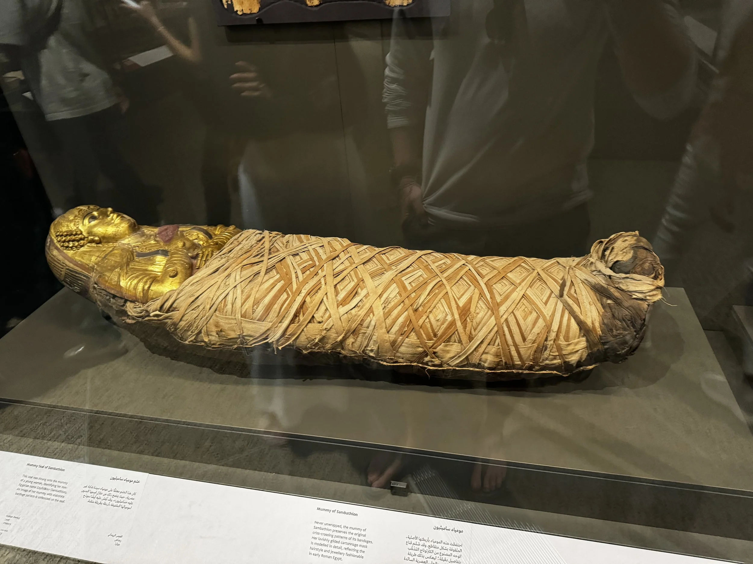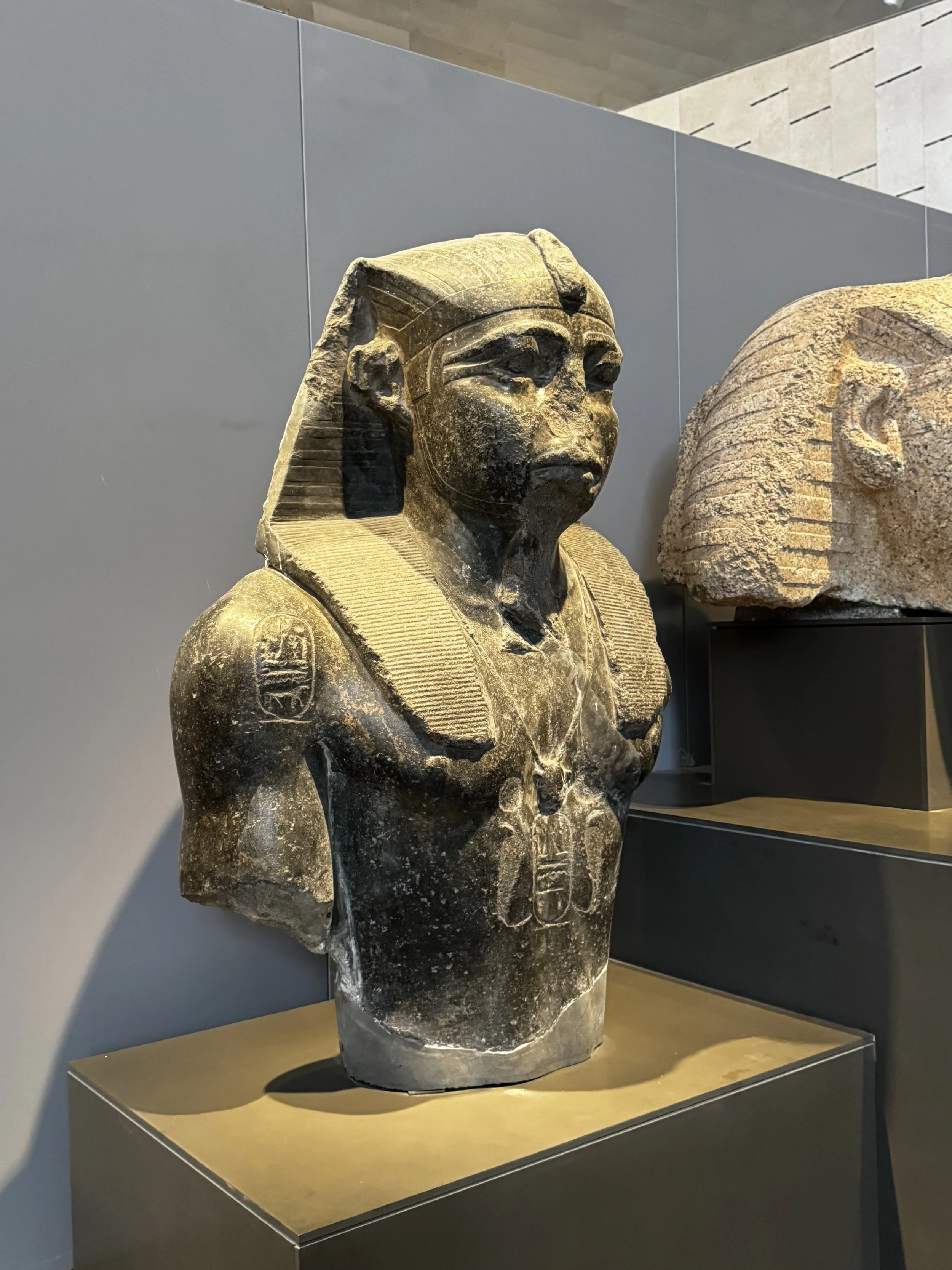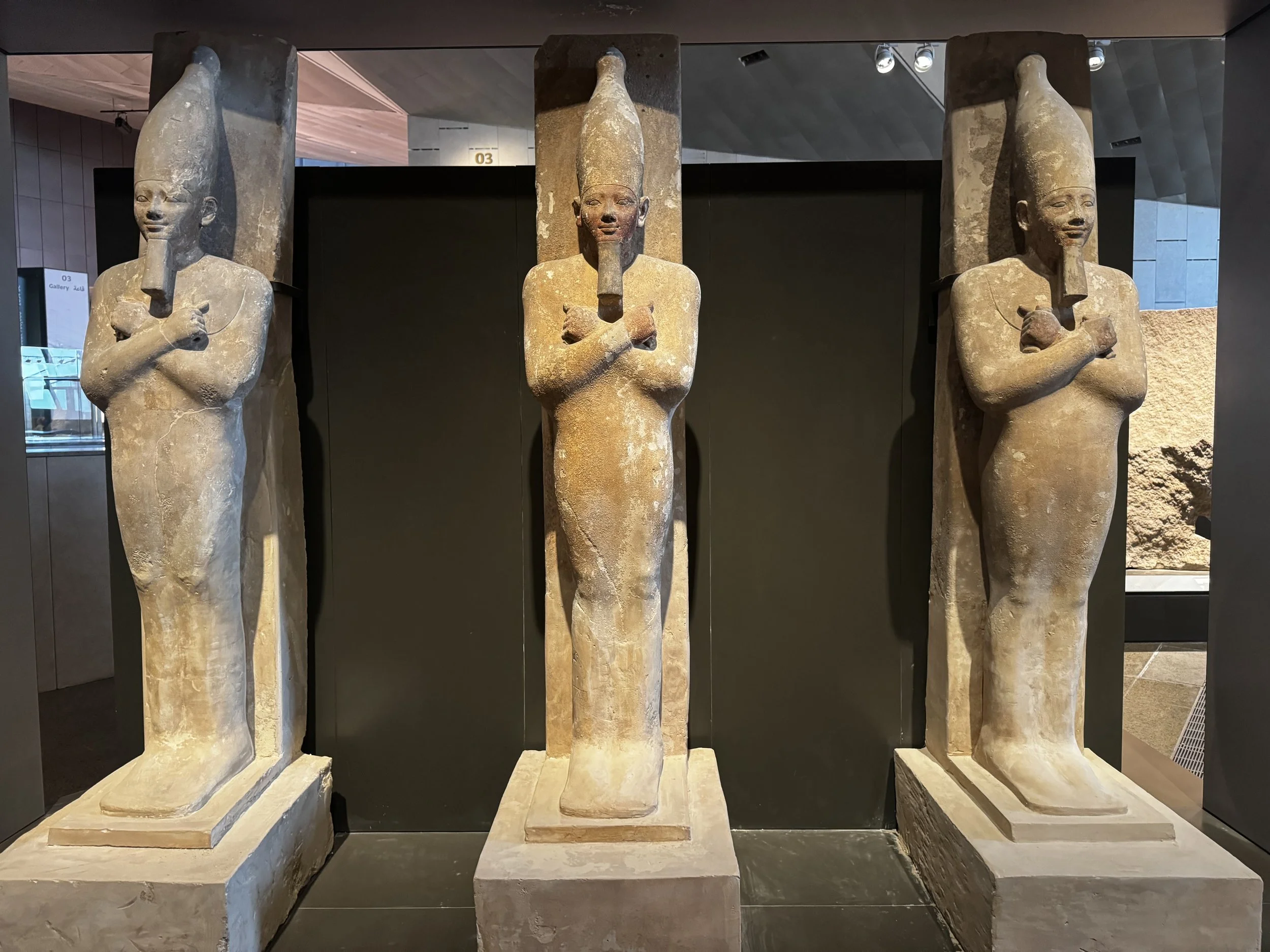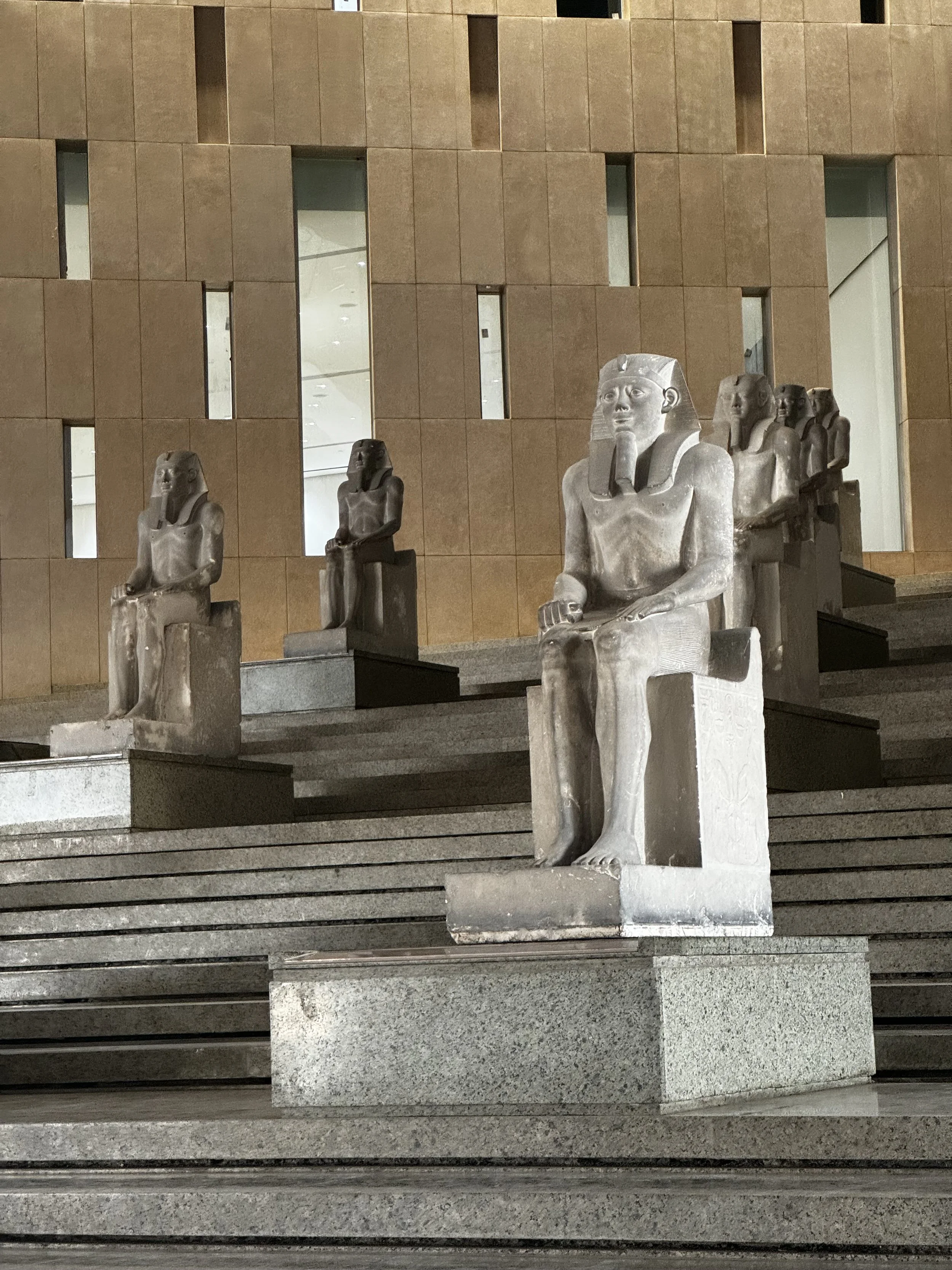 We returned to the hotel and rested before heading to the brand-new Grand Egyptian Museum, the world’s fourth-largest museum and largest archeological collection. The museum had just opened a week before we got there. Walking through the museum entrance, you can already get a feel for how special this museum is, with the ruins displayed everywhere.