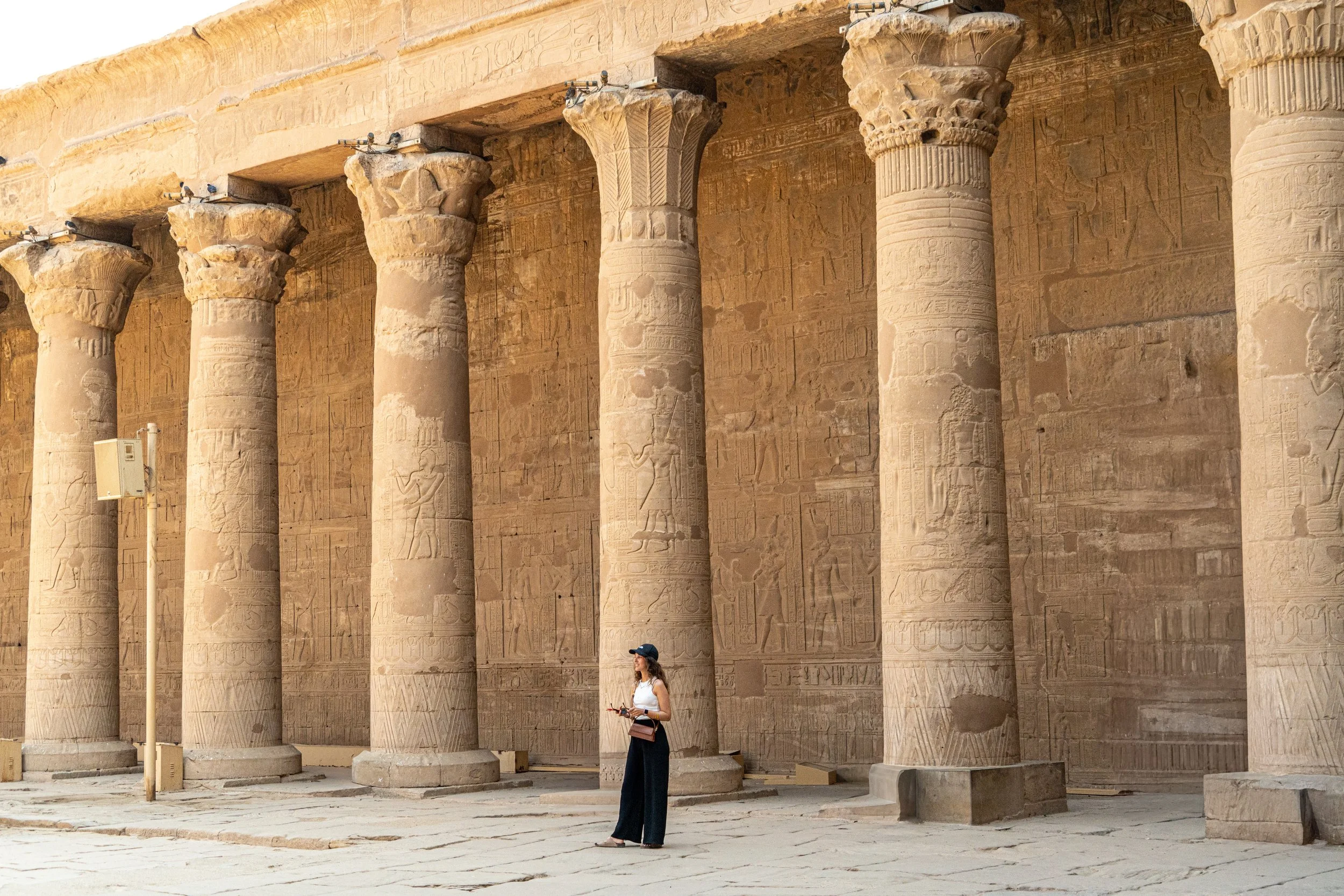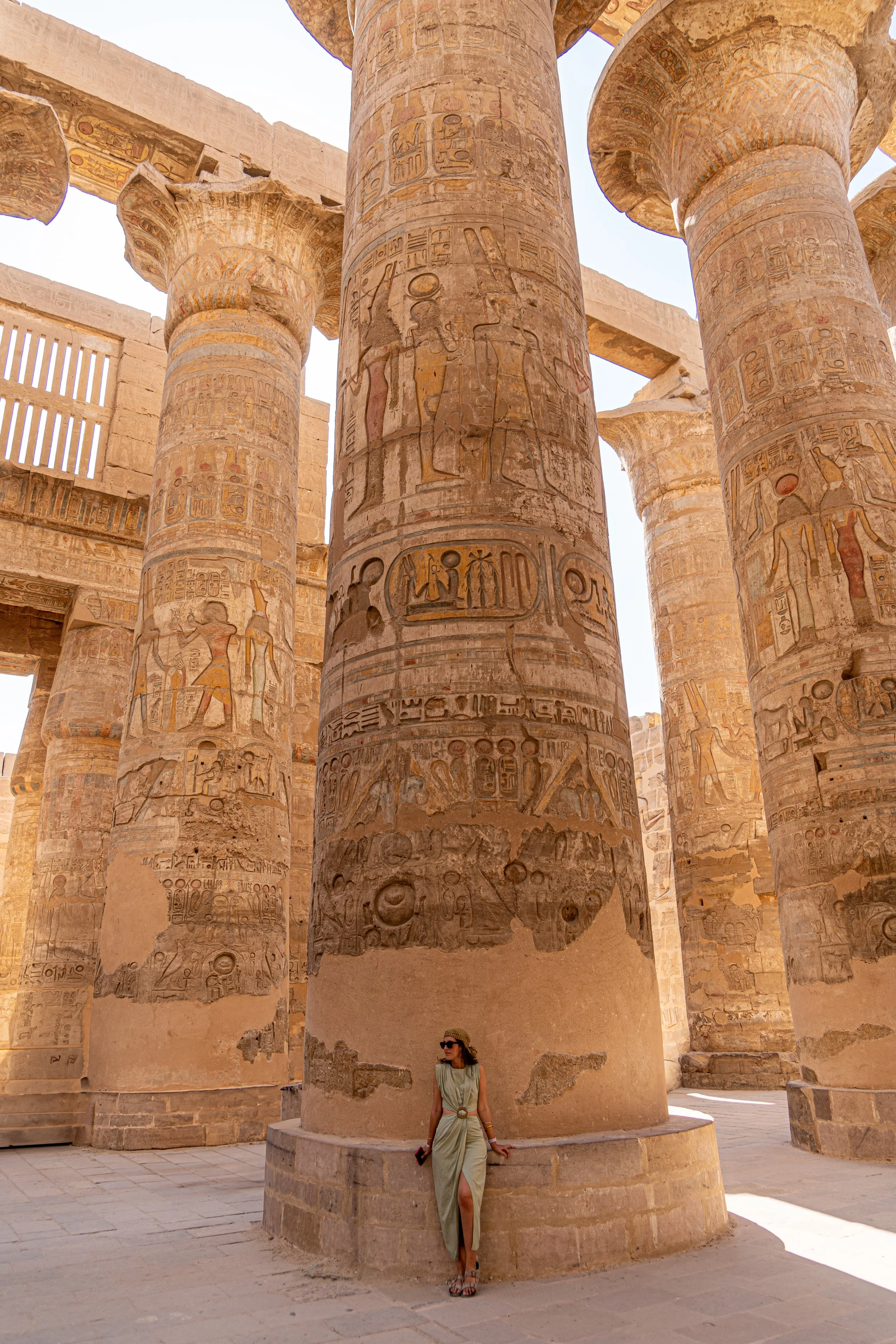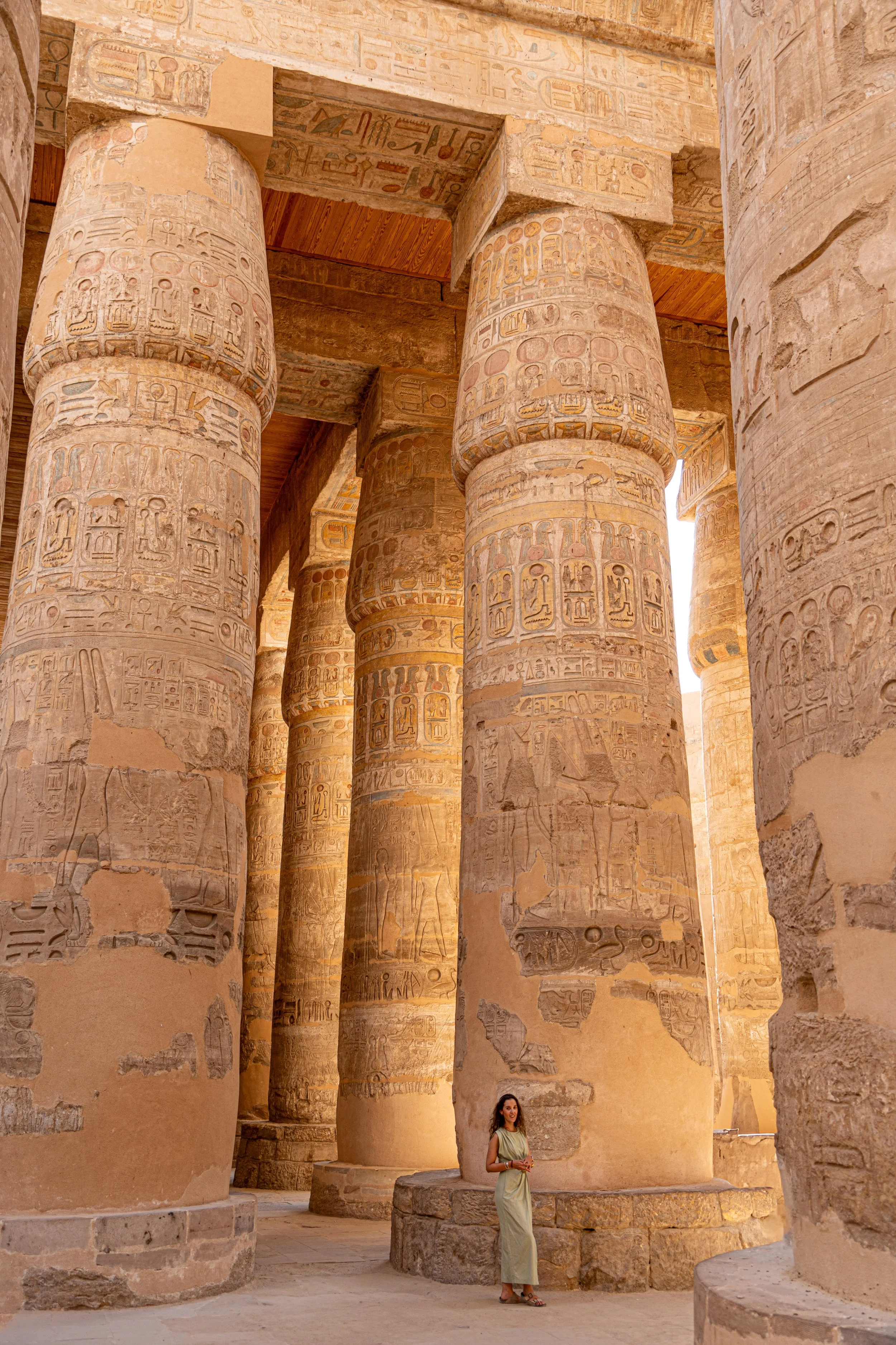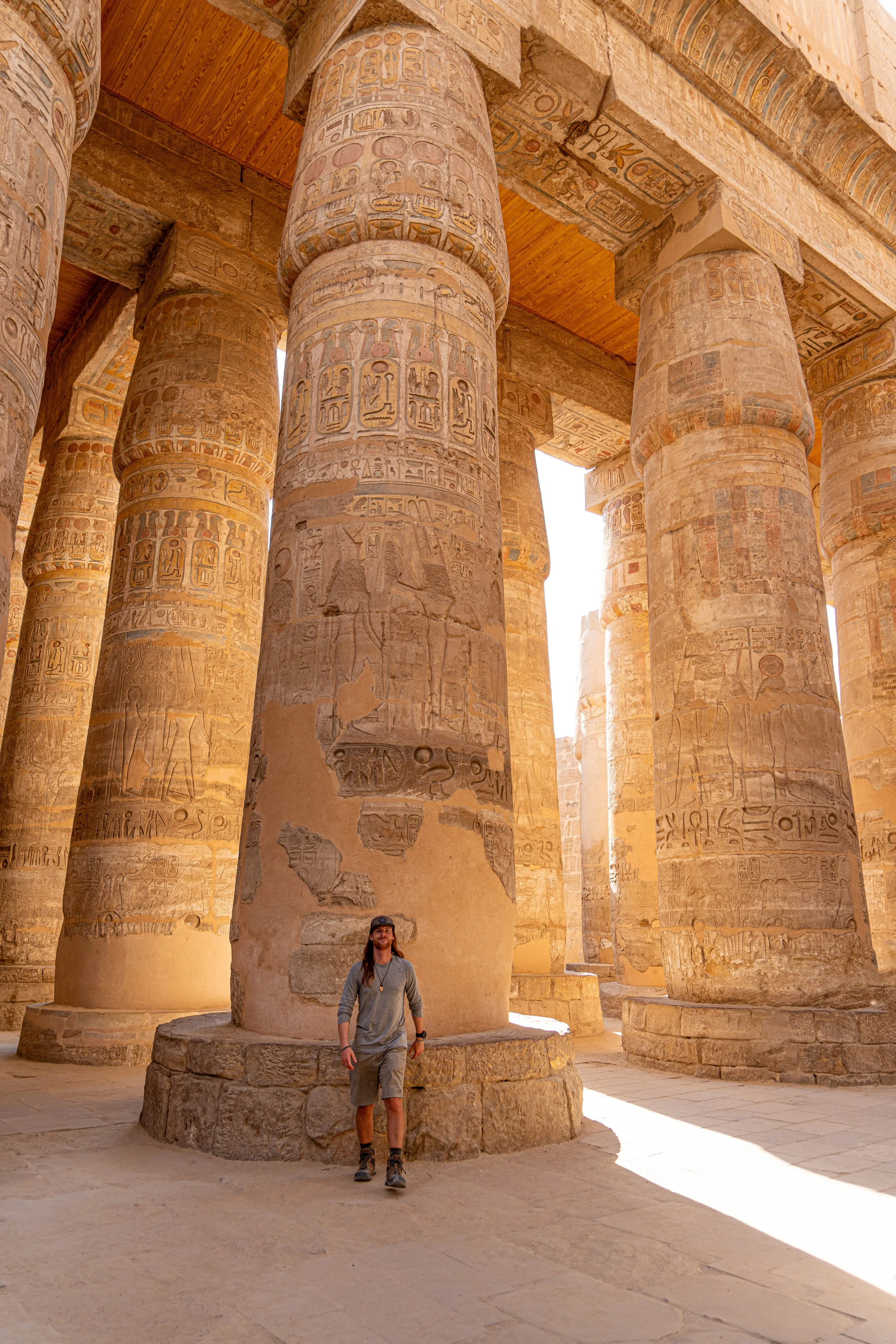 We made our way around the temple complex to take photos, and everything was just breathtaking. The detail on the columns, along with the unique shadows, gave off that desert glow. There are around 134 columns here, but there is a main section in the center where most of them are located, which is the most photogenic area.