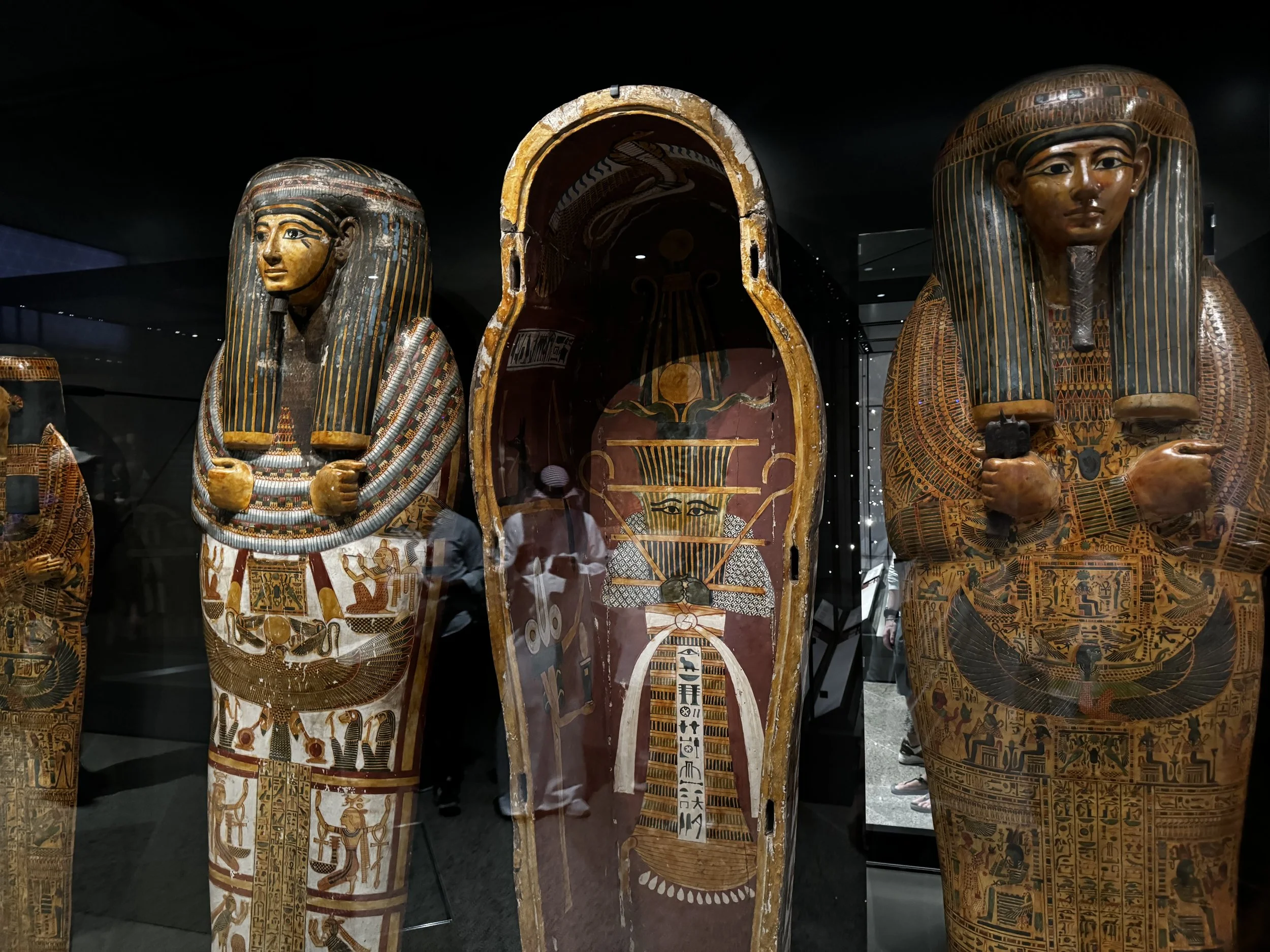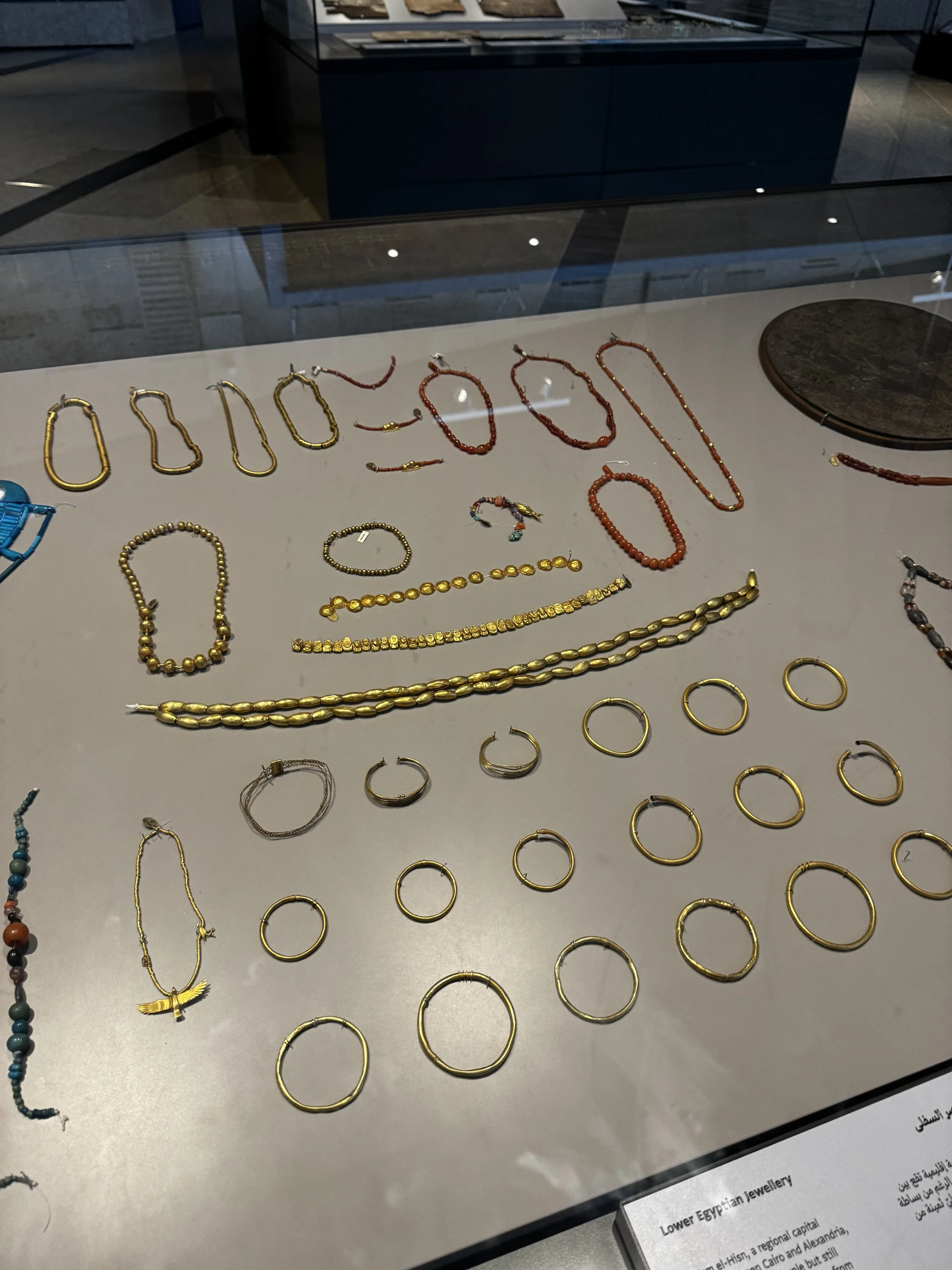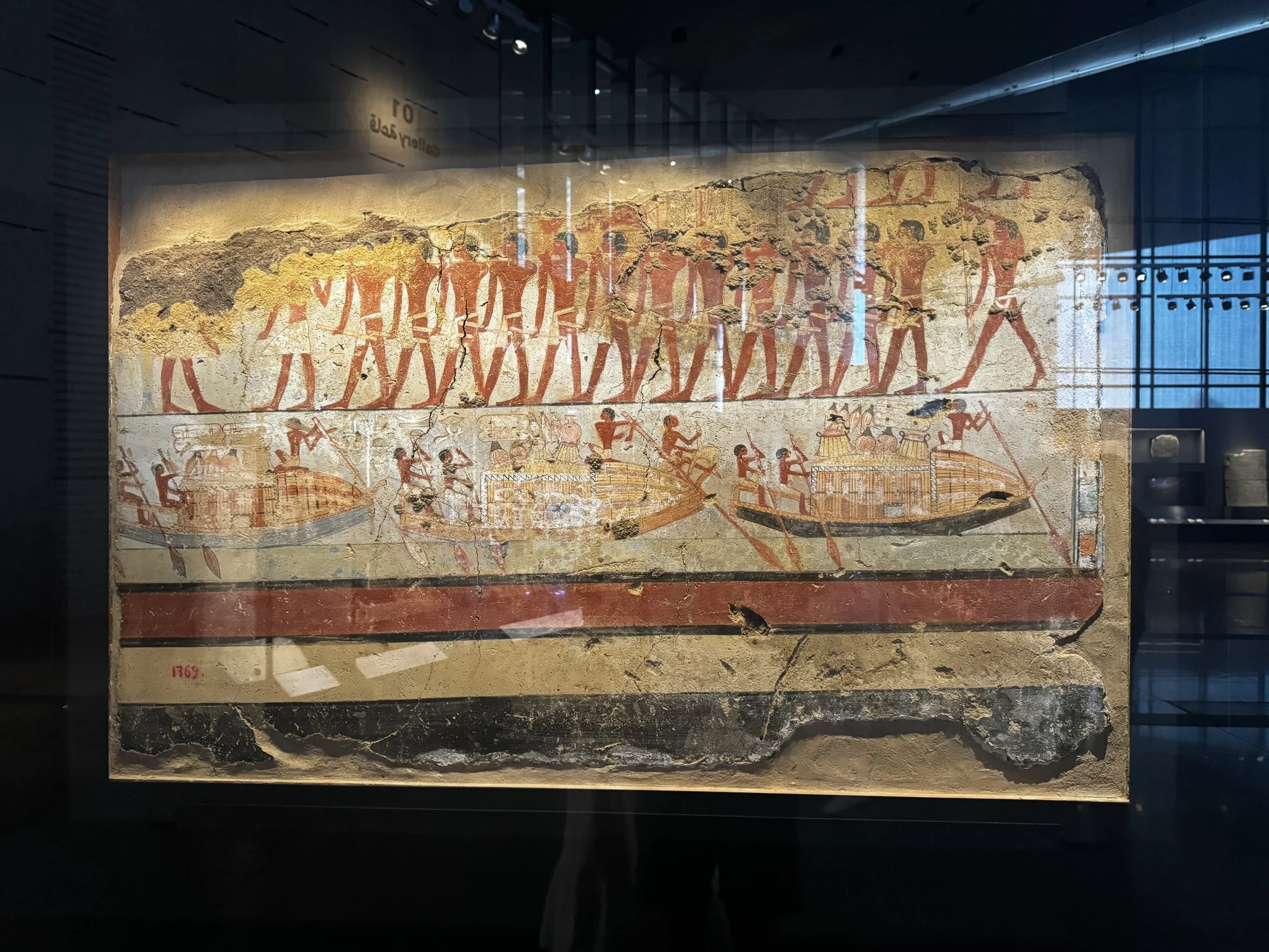 The way it works is that you head up the escalator to the top and work your way through 12 floors of history, starting from the beginning with the Nubian empire and finishing with the Greeks. The displays are breathtaking. The pieces appeared so polished and clean. The colors painted on them thousands of years ago are still vibrant. It took us about two hours to walk through the whole museum, but two of the floors were not open yet, and a couple of other areas, like the boat museum, were not finished.
