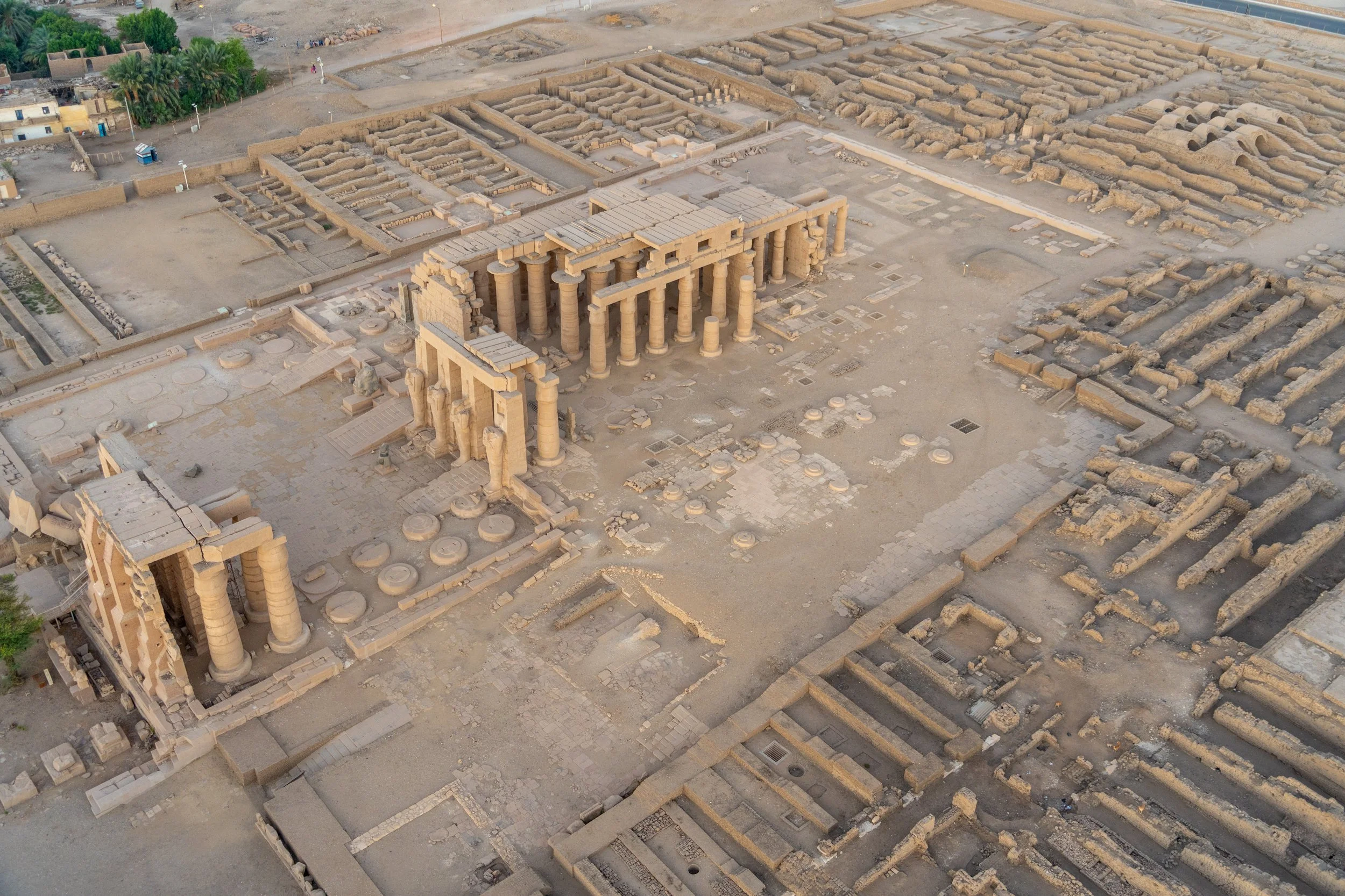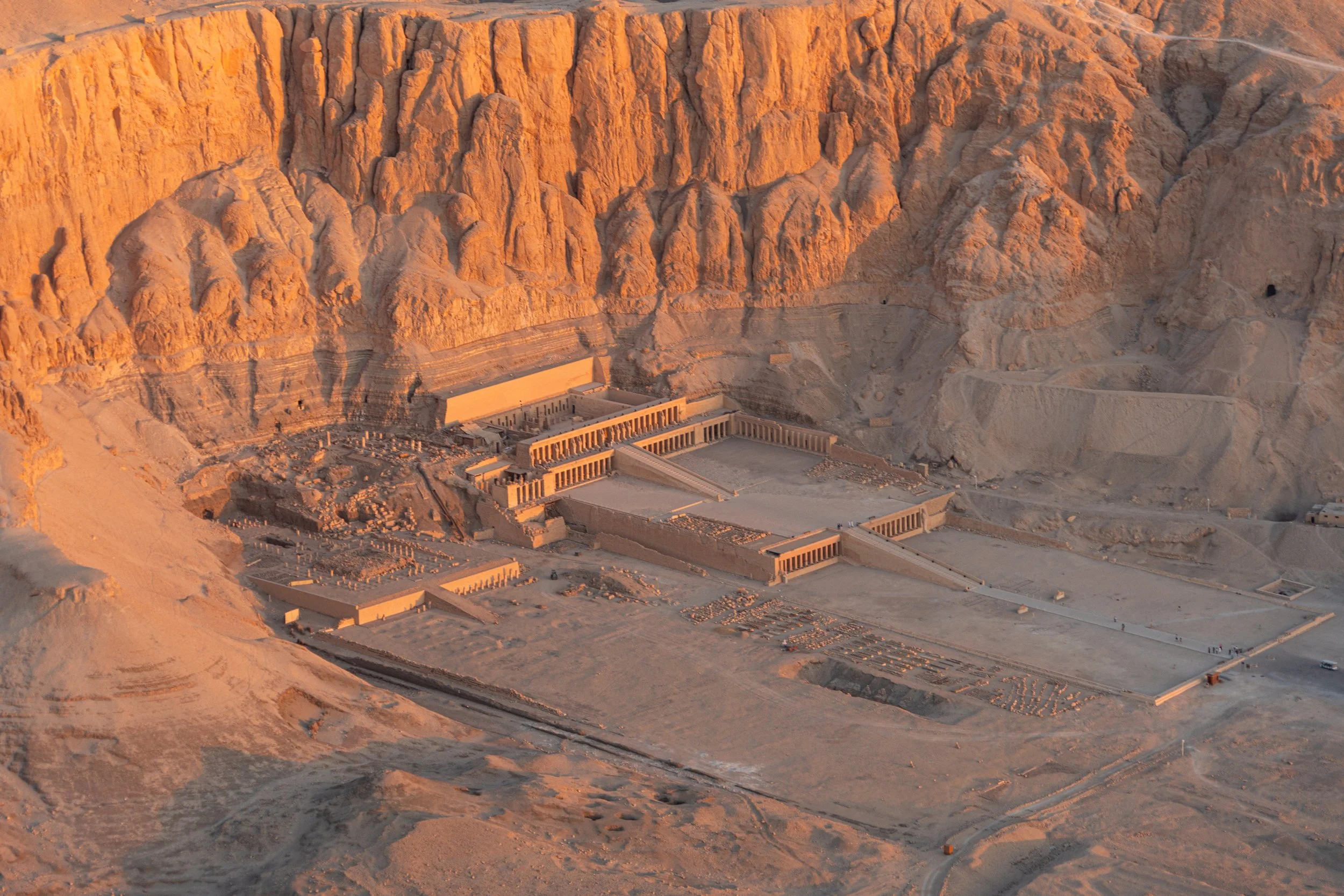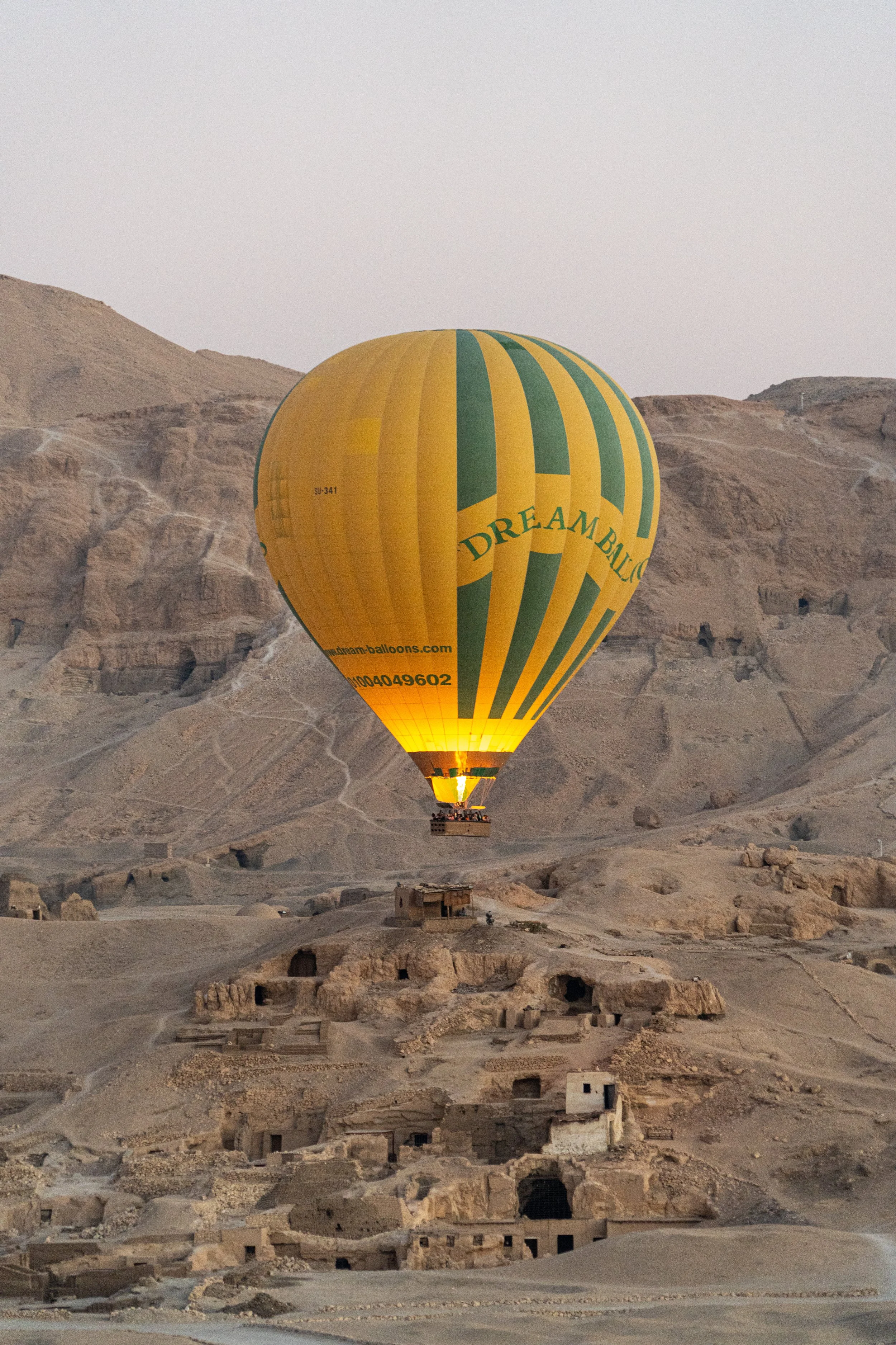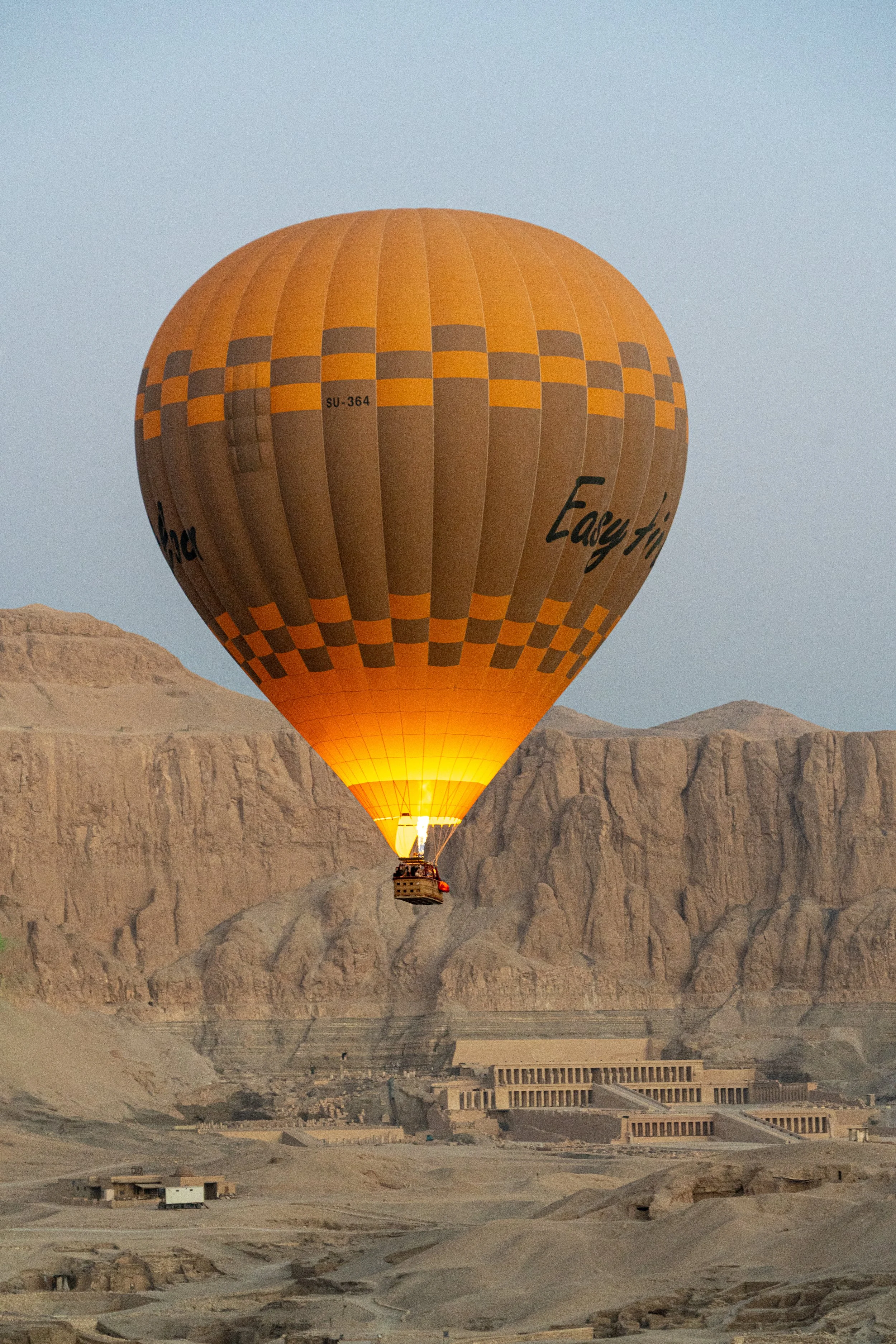 Egypt does not allow drones into the country, so this is the only way to get aerial photos. We floated over the temple complex, so getting that perspective was amazing. Then, the sun peeked over the horizon, casting that golden glow across the mountains and ruins.