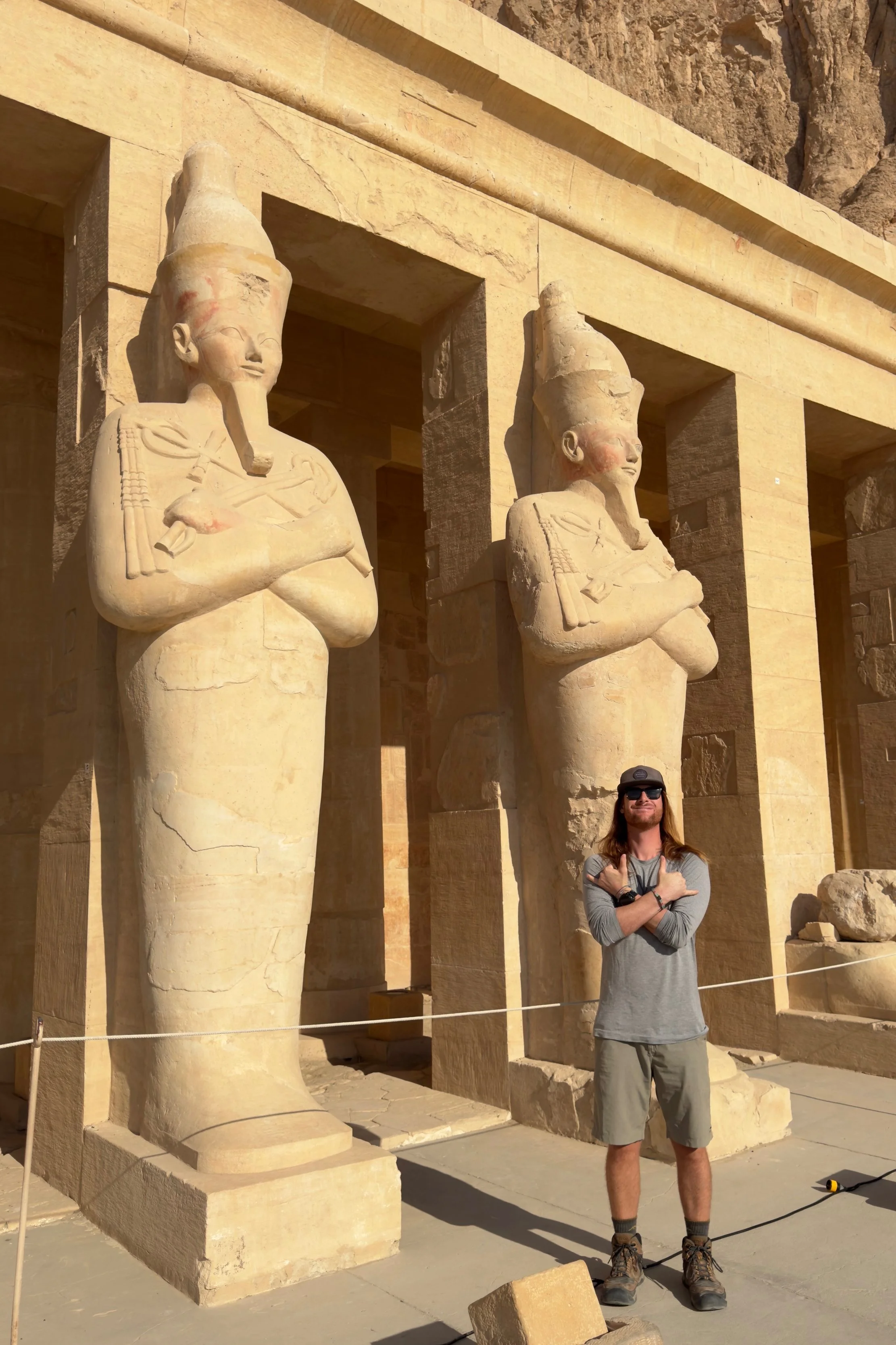 The country of Egypt has always been on my bucket list as it contains some of the best archeology anywhere in the world due to the ancient Egyptian civilization that occurred during the years 3150 BCE to 30 BCE. The Nile River is the longest in the world, starting from Lake Victoria in Uganda and making its way 6,650 km to the Egyptian coast, letting out into the Mediterranean Sea. I have been to Saudi Arabia for work, and since Egypt was so close by, I thought it would be a great destination to visit to experience that rich history. Some of my fondest memories from my youth are of my grandfather, who loved Egypt and mythology, taking me to see the King Tut exhibit at the Denver Museum.