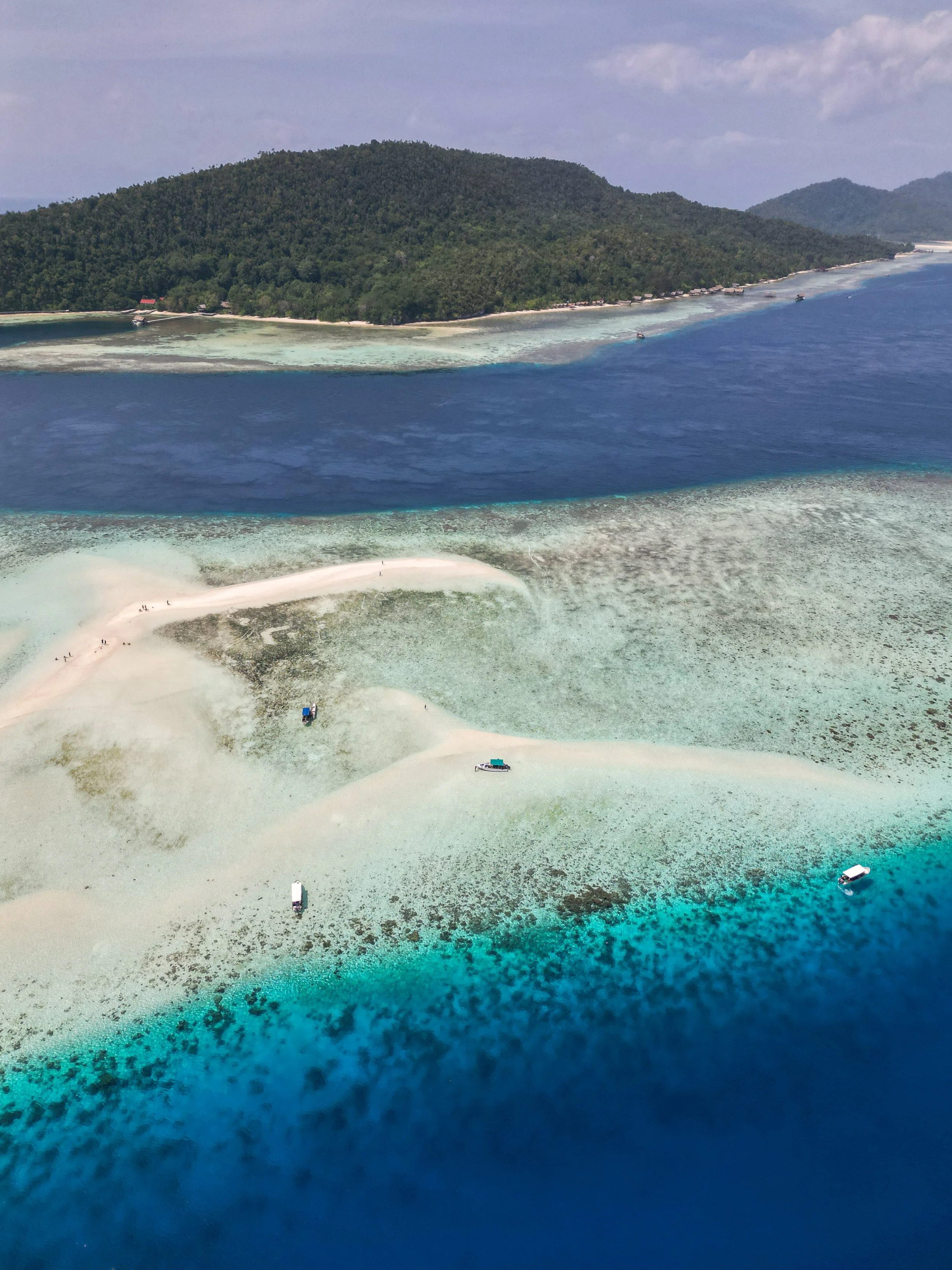 Afterward, we headed to an island for our surface interval. I launched the drone, but the sun was a little too high, although I still got a few shots of the surrounding area.